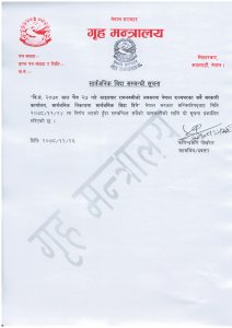 मन्त्रिपरिषद्को बिहीवारको निर्णयअनुसार आइतवार देशभरका सबै सरकारी कार्यालयदेशभरका सबै सरकारी कार्यालय‚ सार्वजनिक निकायमा सार्बजनिक बिदा दिइएको मन्त्रालयले जानकारी दिएको छ।