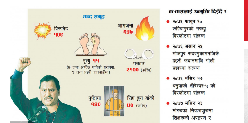 प्रतिबन्धअघि र पछि चन्द समूहको हिंसात्मक गतिविधिबाट प्रहरी, शिक्षक, सर्वसाधारणलगायत ६ जनाले ज्यान गुमाएका थिए । चन्द समूहका ७ जना आफैंले थापेको धरापमा र ४ जना प्रहरी कारबाहीमा मारिएका थिए । चन्द समूहले १ सय ९ ठाउँमा बम विस्फोट र २ सय ५७ स्थानमा आगजनी गर्दा सरकारी, सार्वजनिक र निजी भौतिक सम्पत्तिमा क्षति पुगेको थियो । तर, सहमतिमा ल्याउने नाममा सरकार अपराधमा संलग्न चन्द समूहका कार्यकर्तालाई उन्मुक्ति दिने खेलमा लागेको हो ।