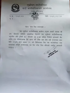 पालिका प्रमुख प्रशासकीय अधिकृत ऋषिराम पन्थीले बुधबार एक सूचना जारी गरि एक दिन पालिका मातहतमा रहेका सबै शाखाको काम नहुने जनाएका छन् ।