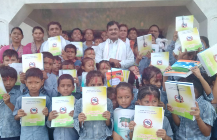 बाणगंगा ७ ले दियो सामुदायिक विद्यालयका विद्यार्थीहरुलाई वडाको लोगो अंकित शैक्षिक सामग्री