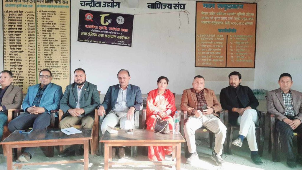 कपिलवस्तु : कपिलवस्तुको चन्द्रौटामा यही पौष १३ गते देखि २४ गते सम्म सन्चालन हुने आठौं चन्द्रौटा कृषि पर्यटन तथा औद्योगिक ब्यापार महोत्सव- २०८० लाई सफल बनाउन आयोजक संस्था चन्द्रौटा उद्योग वाणिज्य संघले आज सर्वपक्षीय अन्तरक्रिया गरेको छ, संघको निर्माणाधीन कार्यालय भवनको सभा हलमा लुम्बिनी प्रदेश सभा सदस्य अर्जुनकुमार केसीको प्रमुख आतिथ्यतामा आयोजित अन्तरक्रियामा शिवराज नगरपालिकाका नगरप्रमुख अजय थापा, उपप्रमुख शिवकुमारी थारु, उद्योग वाणिज्य संघका केन्द्रिय सदस्य जमसेर अली मिया, सुरक्षा निकायका प्रतिनिधि लगायत, वडा तहका जनप्रतिनिधि, राजनीतिक दल, स्थानीय ब्यापारी, शिक्षक , पत्रकार लगायतको प्रतिनिधित्व रहेको थियो ।