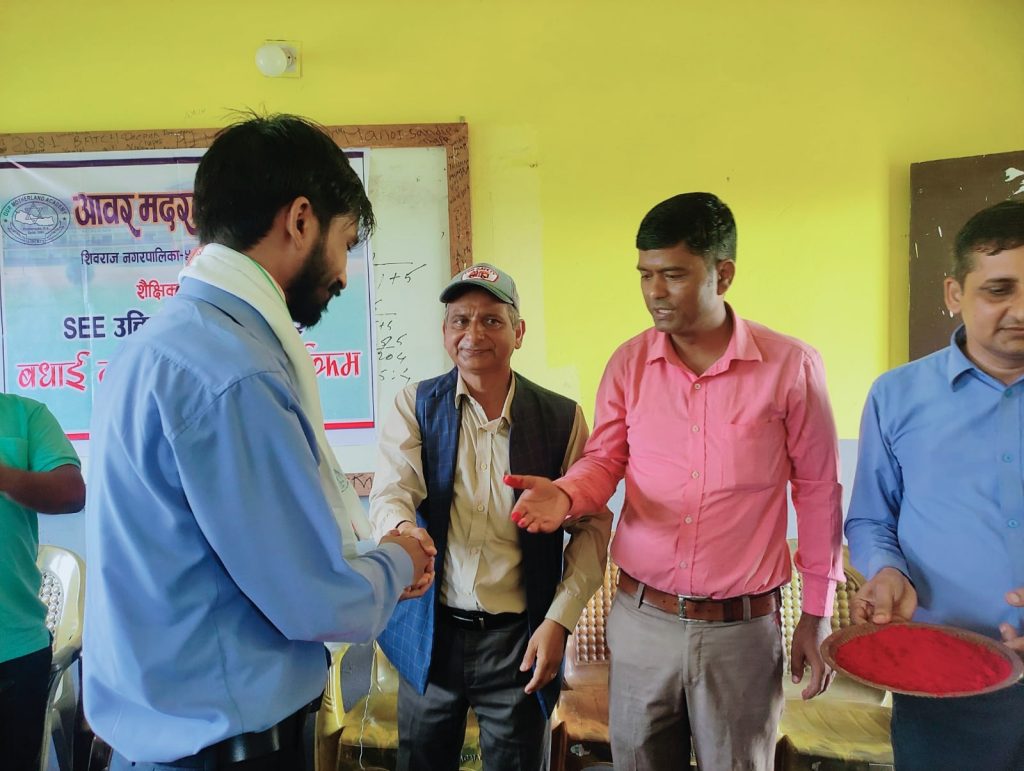 चन्द्रौटा,कपिलवस्तु । शिवराज नगरपालिका–५ स्थित आवर मदरलेण्ड एकेडेमीले विज्ञान विषयमा उत्कृष्ट नतिजा दिलाउन महत्वपूर्ण भूमिका निर्वाह गर्नुभएका शिक्षक ऋषि बेल्बासेलाई एक विशेष कार्यक्रमका बीच सम्मान गरेको छ।